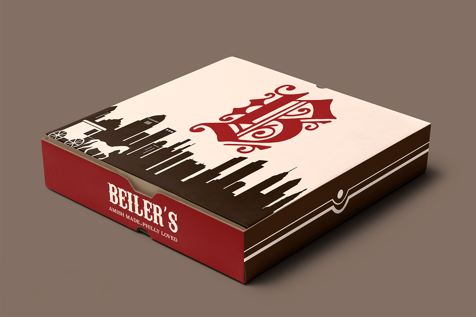 A clean, three-tone design that visually splits the box. One side echoing Amish simplicity, the other side showcasing the Philly skyline. This balance reflects Beiler’s identity as both traditional and contemporary.