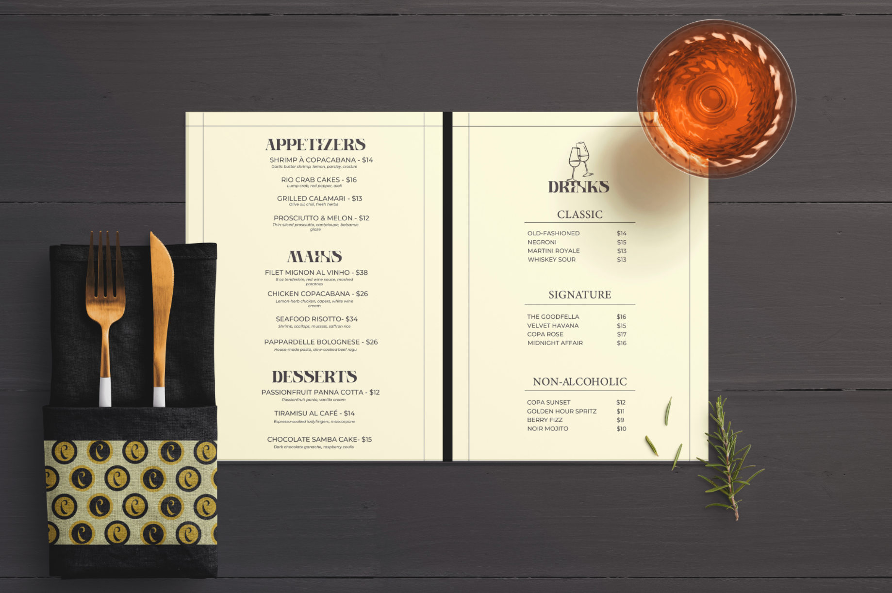 Copacabana is a high-end lounge and nightlife experience inspired by classic nightlife culture and modern luxury. The goal of this project was to create a strong, elegant brand identity that feels premium, stylish, and memorable. The design captures the atmosphere of a sophisticated night out while still feeling modern and relevant.