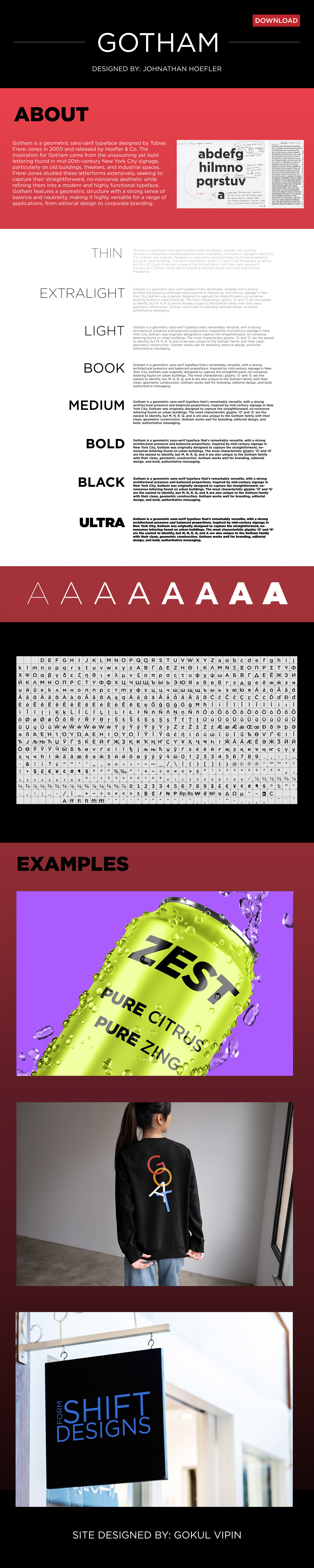 The idea of this project was to create a single-page site that showcases the entire font family of a single Typeface. The site was designed so that it can fit any browser window, specifically focusing on the largest width (desktop) and the smallest width (mobile). After creating the design I used Figma's Auto Layout features as well as the basics of coding the design using HTML and CSS.